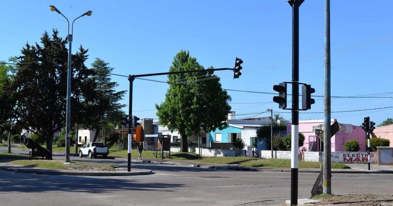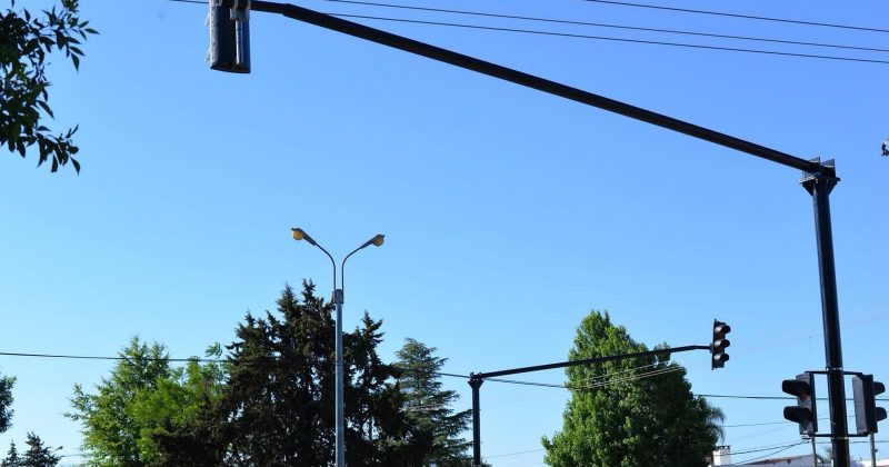 Se trabaja en la instalación de nuevos semáforos inteligentes en el cruce de Boulevard Rodriguez Correa y las calles 25 de mayo y 18 de julio.
