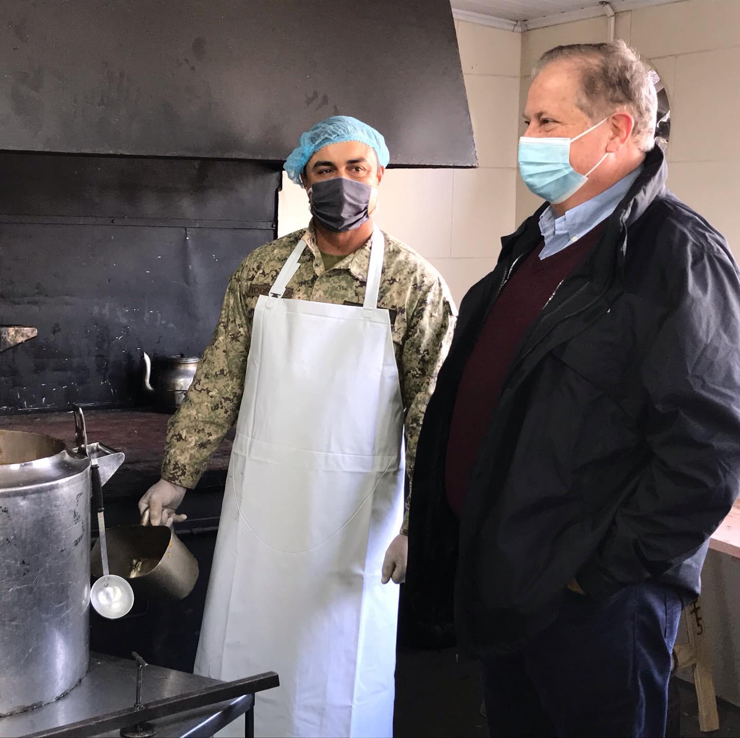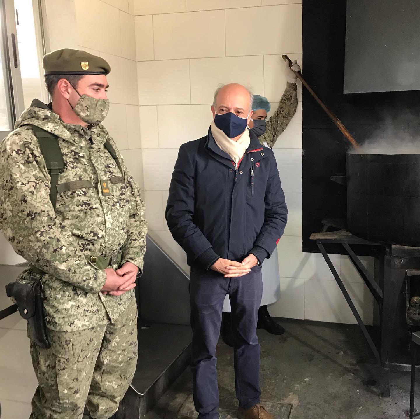 El Intendente Wilson Ezquerra y el Ministro de Defensa Nacional, Dr. Javier García recorrieron y observaron el proceso de elaboración del Plato Caliente. En el Regimiento 5to. se cocina para atender unas 400 personas en los barrios Godoy, Santa Isabel y Santángelo. El todo el departamento la Intendencia de Tacuarembó atiende a 3000 personas en situación de vulnerabilidad alimentaria.