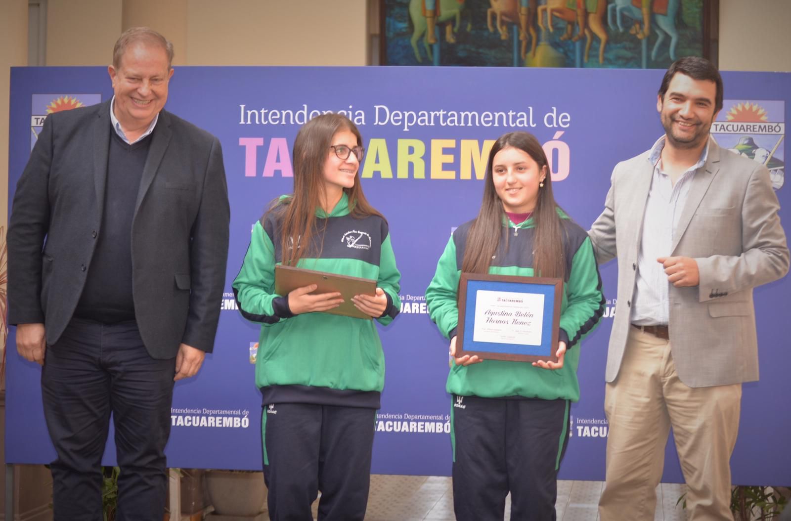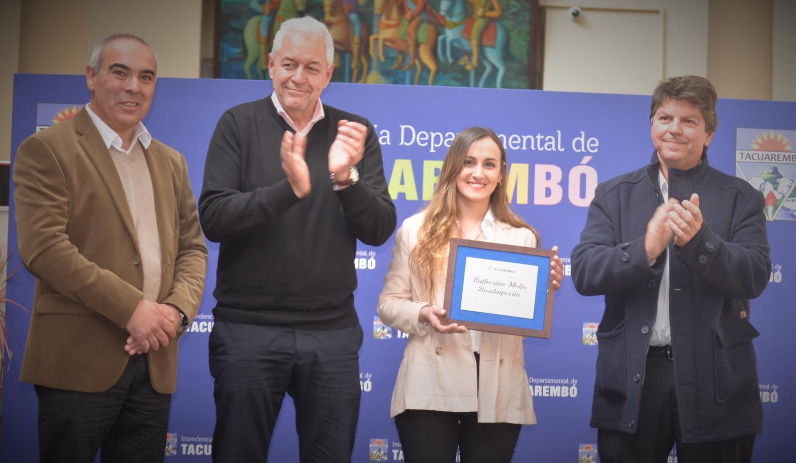 Autoridades, familiares y amigos celebraron con orgullo la entrega de placas de reconocimiento que realizó la Intendencia de Tacuarembó a la cantante Kathy Bordagorria; la jugadora de fútbol Alison Latua Velázquez; las integrantes del grupo de canotaje de San Gregorio de Polanco, Ana Suárez y Agustina Hornos, así como al tenista Valentino Aliano Pastorini.