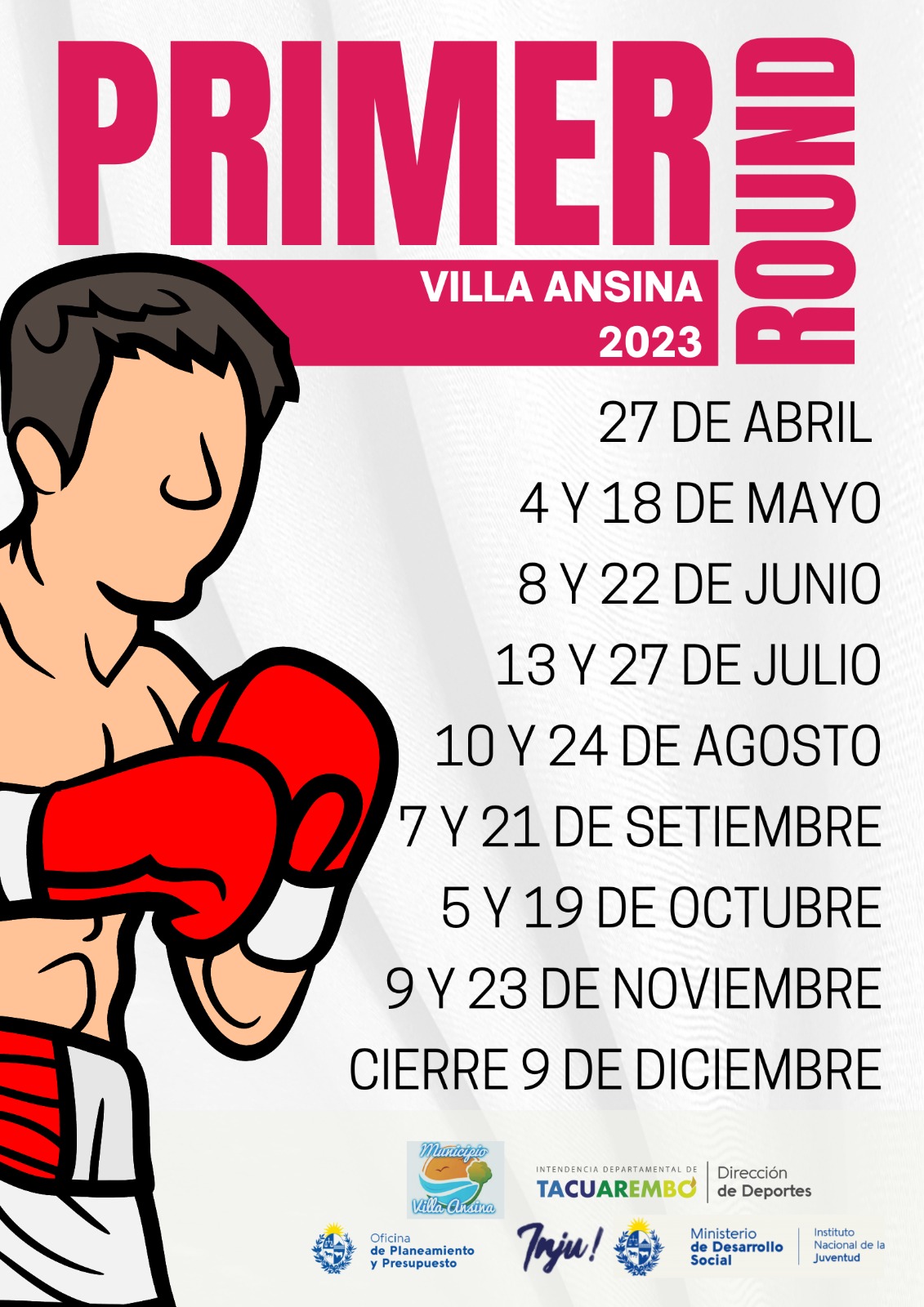 Se invita a aprender y practicar boxeo y jiu-jitsu en forma gratuita. La propuesta esta orientada a grupos mixtos y se dictará en el Salón del Municipio de Villa Ansina.