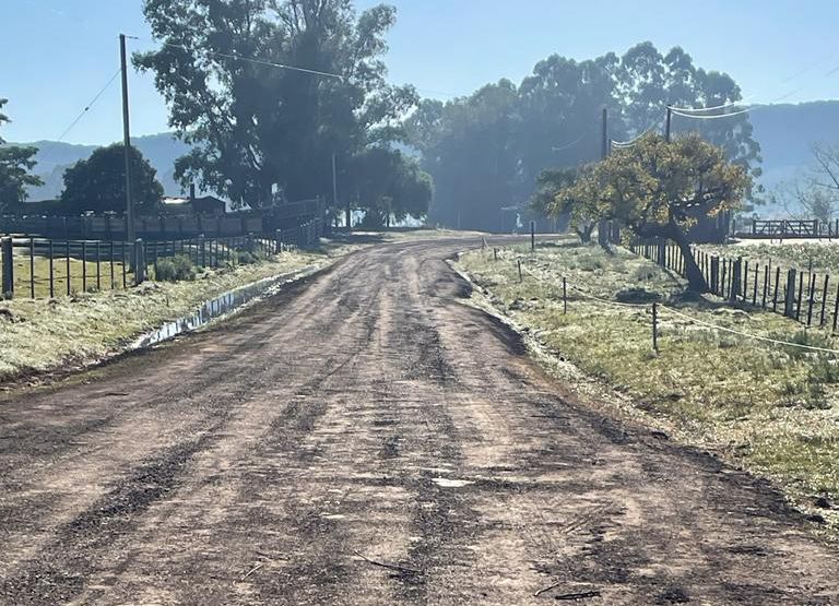 El intendente Wilson Ezquerra dio el visto bueno para efectuar la reparación del Camino Los Rosanos y, de esta manera, mitigar el polvo que levantaba el tránsito pesado al circular por la zona, especialmente por parte de los camiones que trasladan maderas.