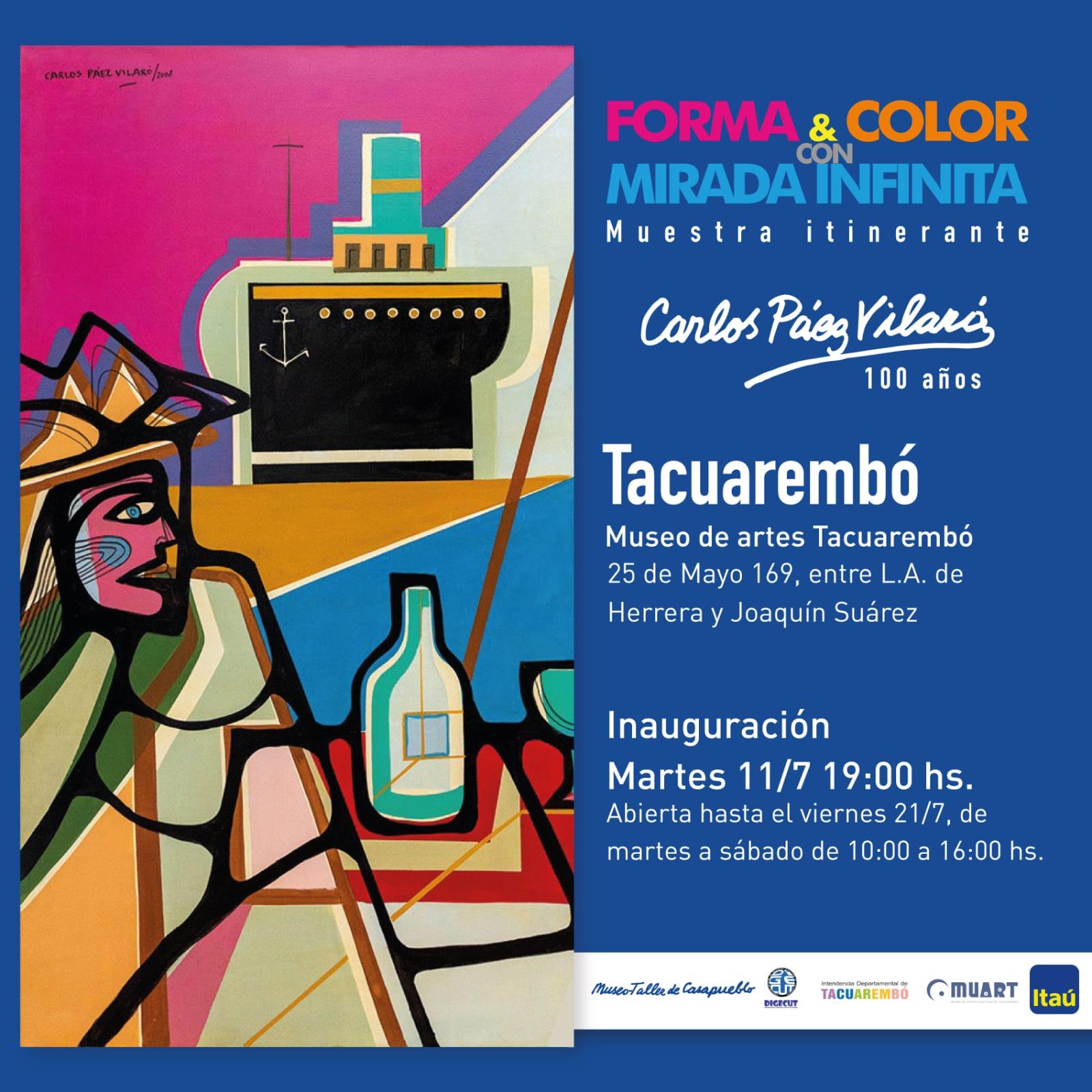 Se inaugura este martes 11 de julio a las 19 horas la muestra itinerante “FORMA & COLOR con MIRADA INFINITA” (100 años – Carlos Páez Vilaró). Se invita a seguir las huellas del artista uruguayo y observar su evolución a través del tiempo, transitando un camino de más de 60 años de creación.