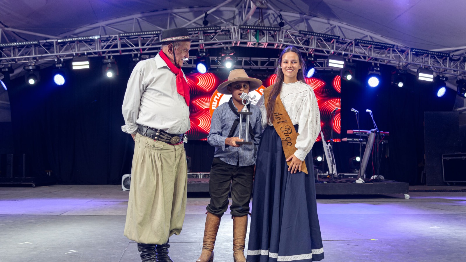 En el escenario “Luis Landriscina” se realizó la entrega de premios de las Pruebas de Campo de las Sociedades Visitantes, así como del Concurso de Vidrieras, en el cual se destacaron las decoraciones alusivas a la Fiesta de la Patria Gaucha.
