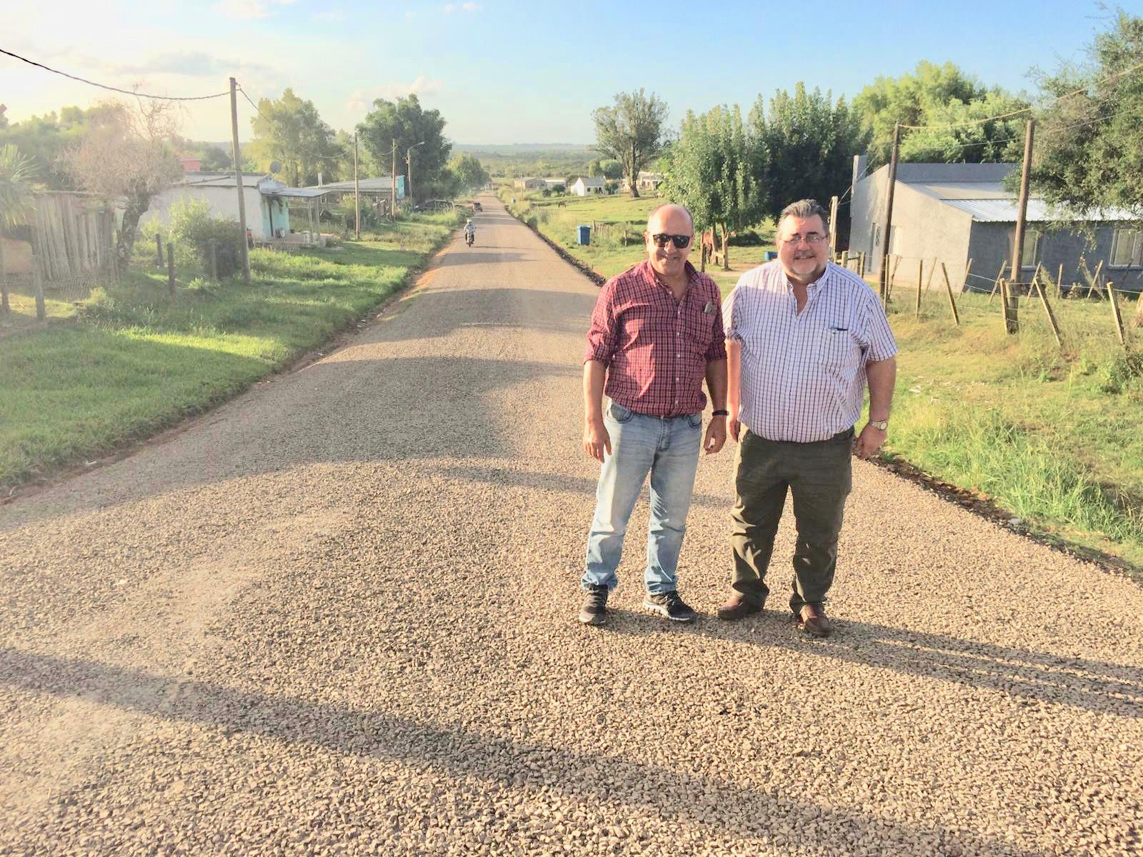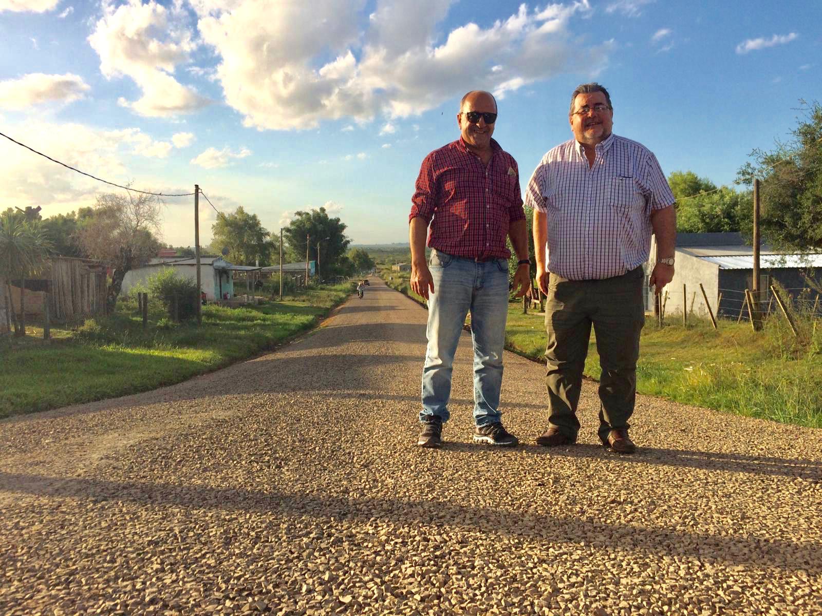 El Intendente acompañado por el Alcalde Pablo de los Santos, recorrió esta tarde, las obras en ejecución en Villa Ansina. Se avanza en la mejora de calles con Riego Bituminoso Doble y Cordón Cuneta.
