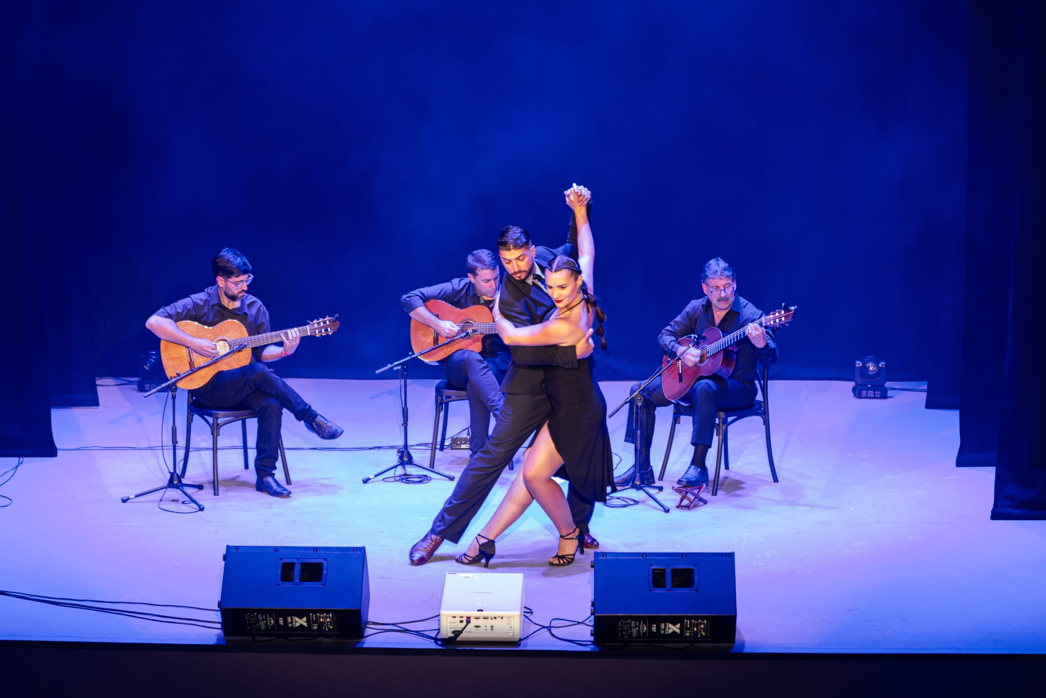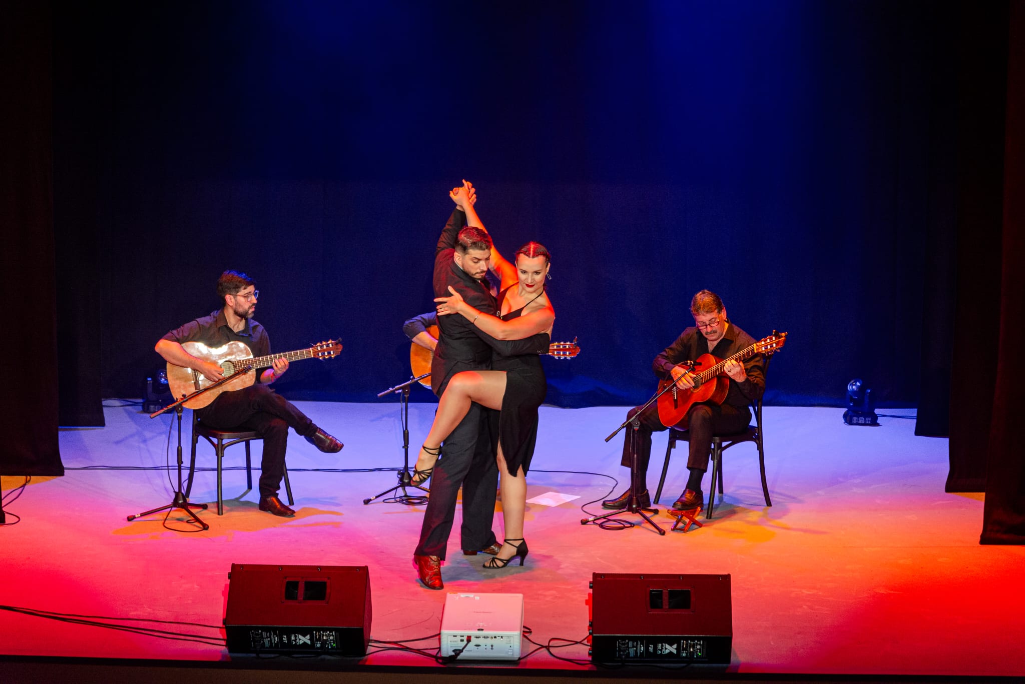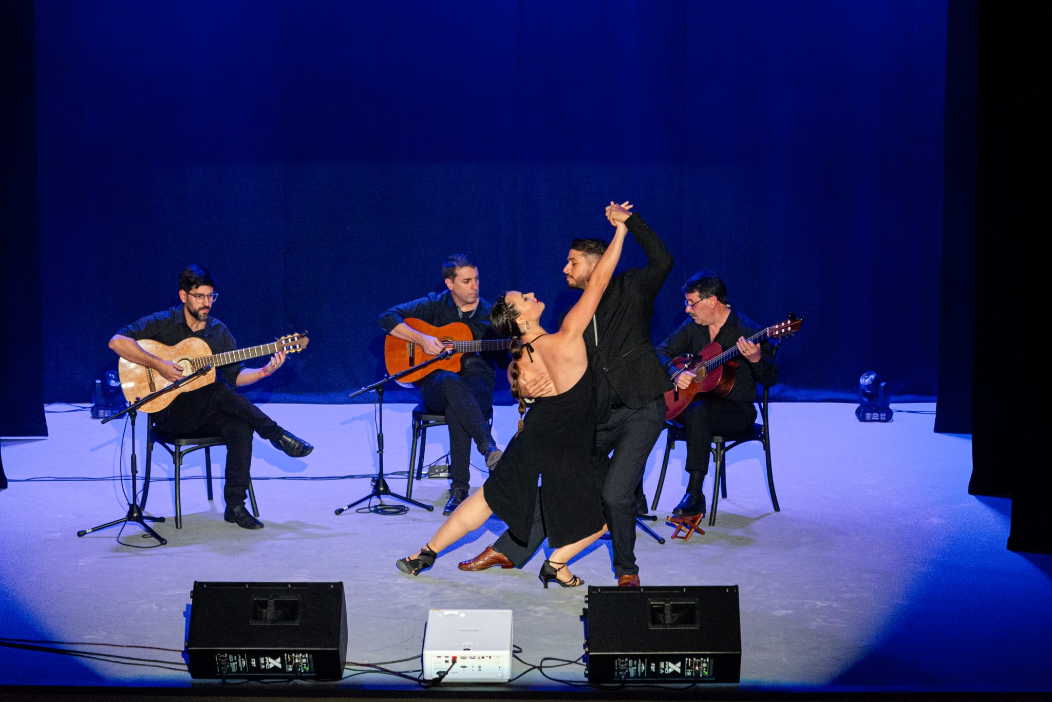 La pareja de baile compuesta por Álvaro Cuello y Larissa García acompañó las interpretaciones del grupo que actuó el pasado viernes 26 de abril.