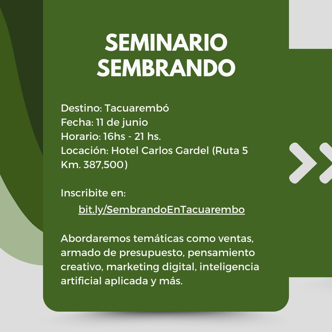 La instancia tendrá lugar el martes 11 de junio, en el Hotel Carlos Gardel (Ruta 5, kilómetro. 387.500). A las 15.30 horas se hará el registro de asistentes, mientras que el inicio del seminario está previsto para las 16 horas.