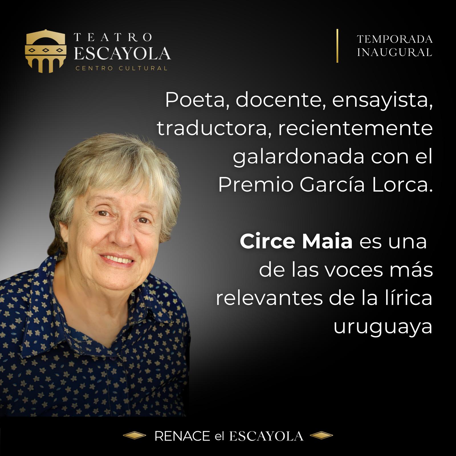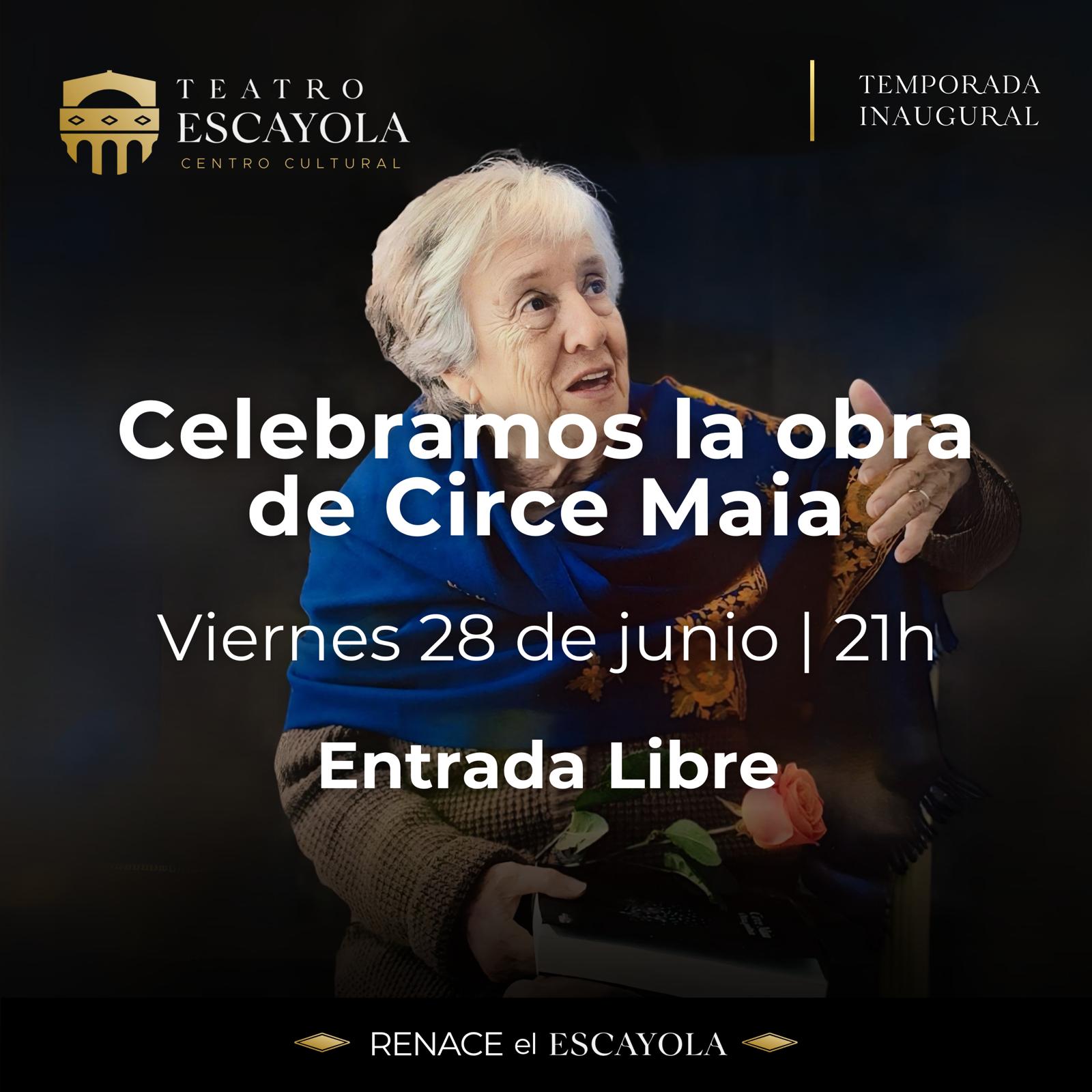 El viernes 28 de junio, a las 21 horas, el Teatro Escayola será el escenario de una jornada memorable, donde a través de distintas disciplinas artísticas, se celebrará la extraordinaria trayectoria de Circe Maia, así como su aporte a la cultura uruguaya.
