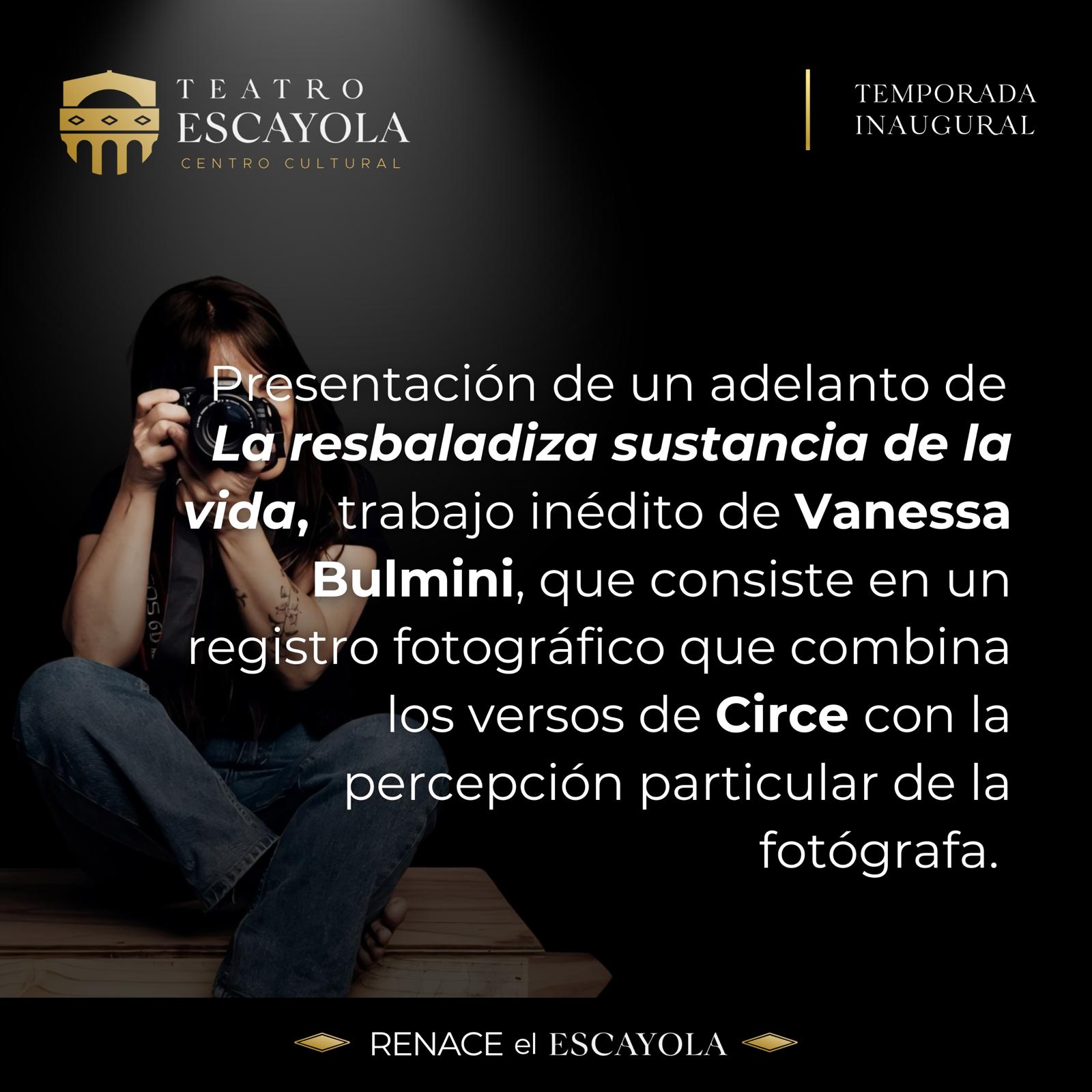 También habrá un adelanto de “La resbaladiza sustancia de la vida”, trabajo inédito de Vanessa Bulmini, que consiste en un registro fotográfico que combina los versos de Circe con la percepción particular de la fotografía. En el cierre se leerán poemas musicalizados por el grupo “Como 3 extraños”.