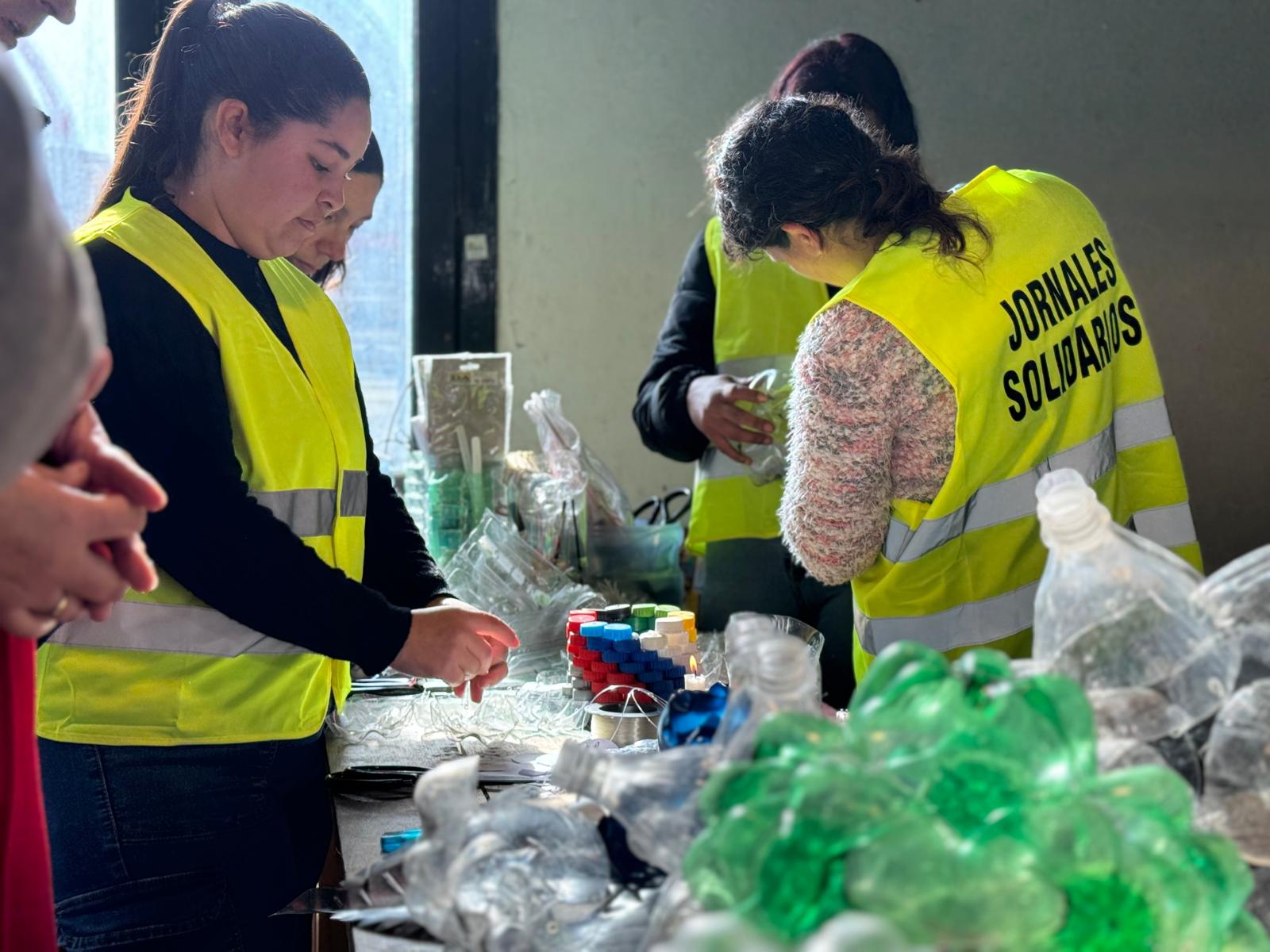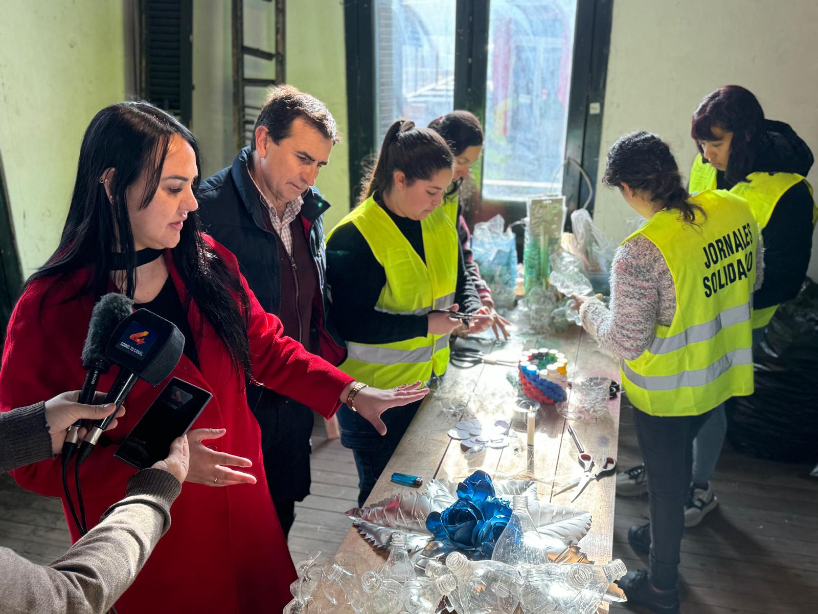 Sobre el proceso de transformación explicó que las botellas se recogen de los botelleros, se limpian y se les quitan los rótulos antes de comenzar la construcción de las figuras decorativas: “Empezamos hace unos meses y ya tenemos varios materiales listos que contarán con mucho brillo”, añadió. Además, destacó la colaboración del personal de los Jornales Solidarios, quienes también están aprendiendo el oficio y contribuyendo al proyecto.