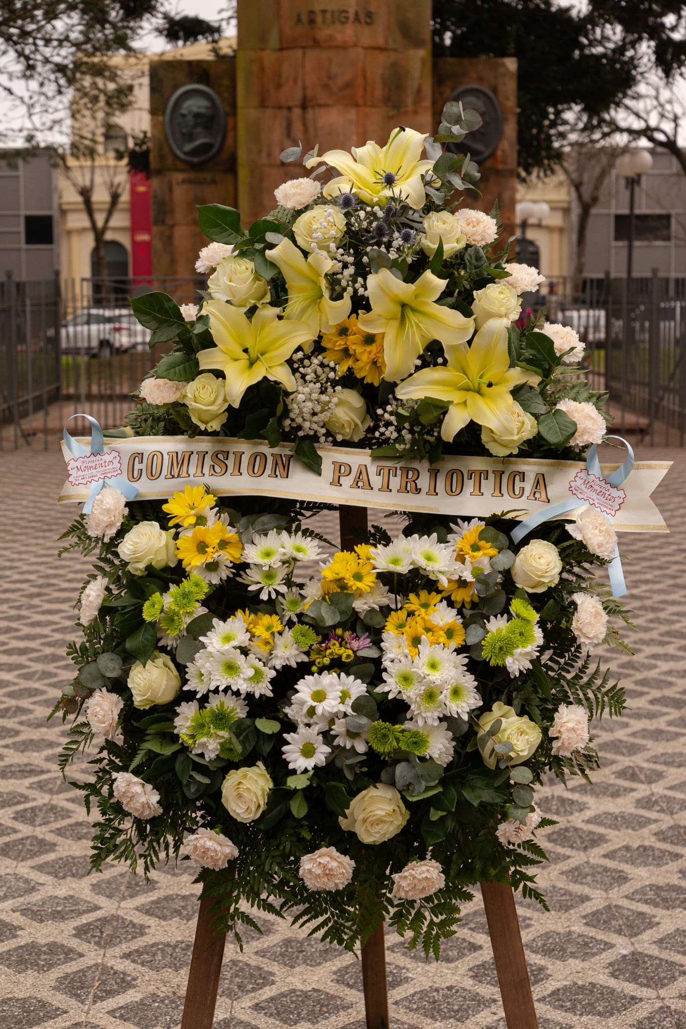 Posteriormente, se realizó la colocación de la tradicional ofrenda floral de la Comisión Patriótica, seguida del Toque del Silencio por parte del trompa del Regimiento “Misiones” de Caballería Blindado Nº 5. El acto continuó con la entonación de la Marcha Mi Bandera.