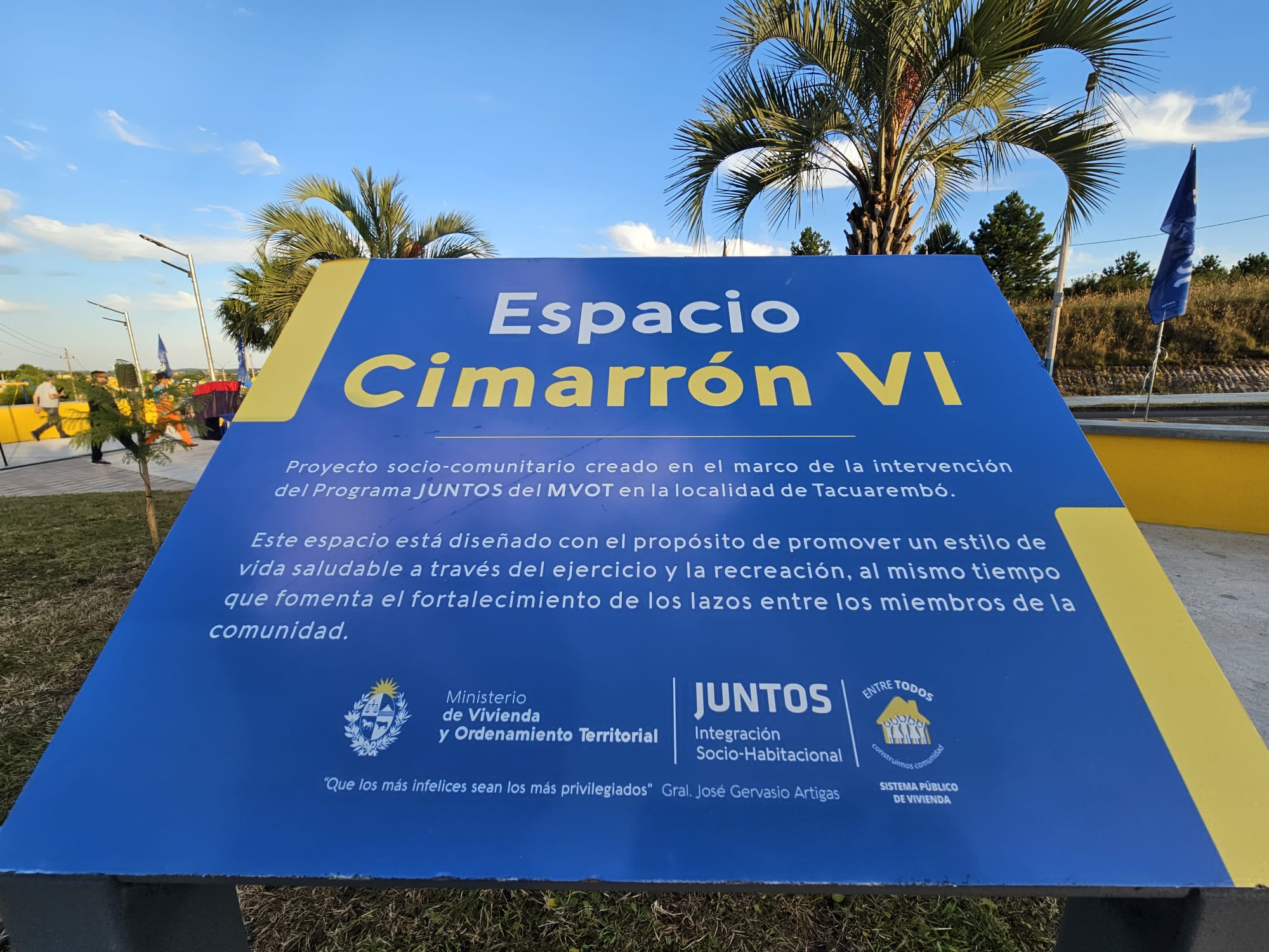 Cómo resultado de un convenio firmado en 2023 entre el Programa Juntos, el Ministerio de Vivienda y Ordenamiento Territorial, y la Intendencia de Tacuarembó, también se incluyó la construcción de una nueva plaza en un terreno donado por la Intendencia.