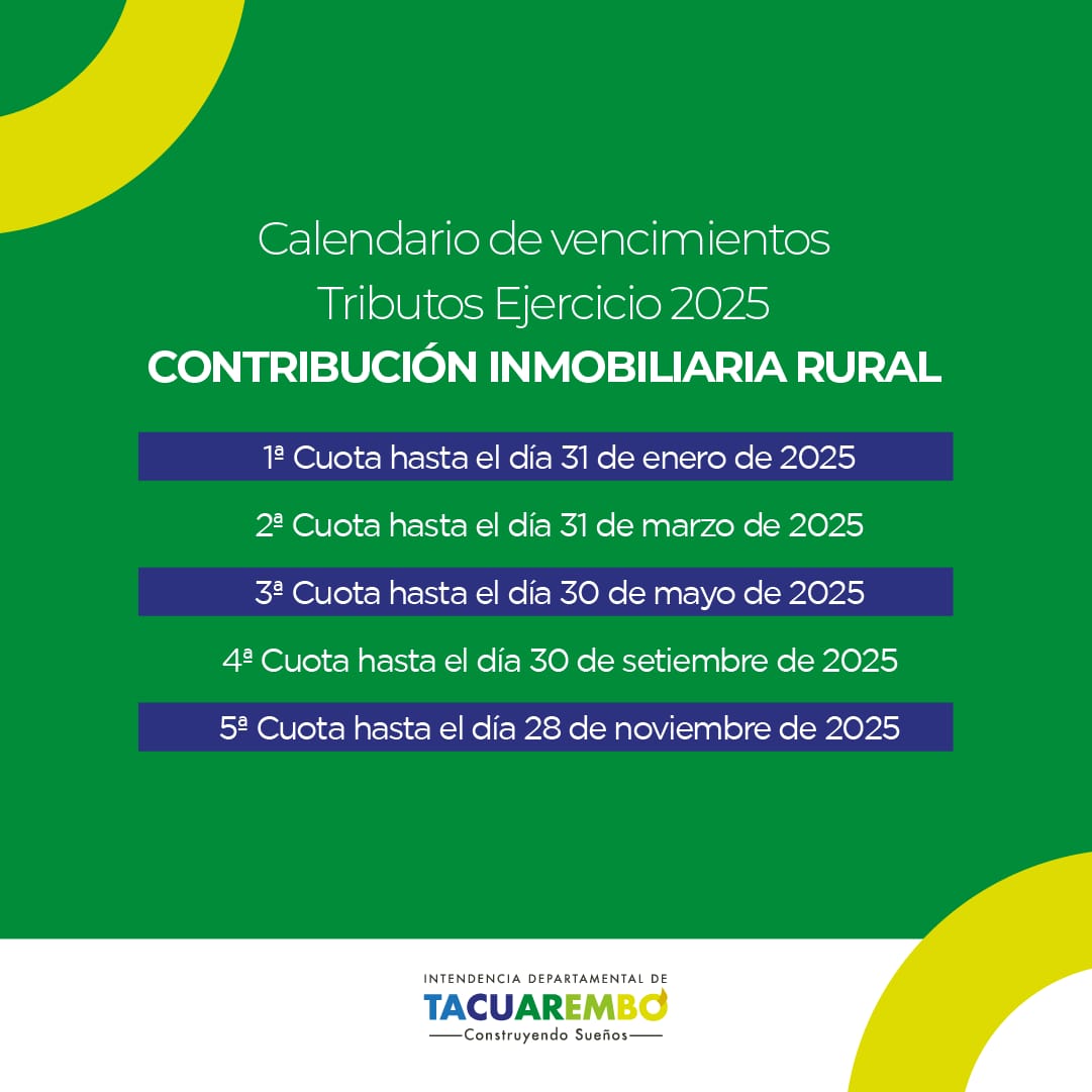 La Intendencia de Tacuarembó informa a la población sobre las fechas de vencimiento correspondiente a los tributos para el Ejercicio 2025.