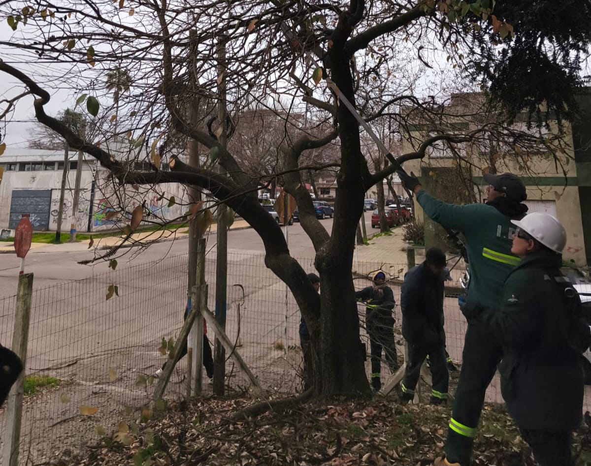 En dos jornadas de trabajo, desarrolladas entre las 8:00 y las 12:00 horas, se completó la poda de aproximadamente el 70% del arbolado del liceo. Las tareas se realizaron bajo la dirección técnica de la Ingeniera Forestal y Magíster en Economía Aplicada, Nora Rugiero, autora del informe integral que respalda esta intervención.