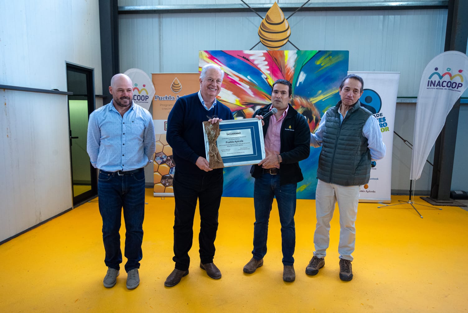 En una jornada de gran simbolismo para la apicultura nacional, el intendente de Tacuarembó, Wilson Ezquerra, entregó una placa de reconocimiento a la cooperativa Pueblo Apícola, destacando el esfuerzo familiar y emprendedor que ha posicionado a la miel uruguaya en los mercados más exigentes del mundo.
