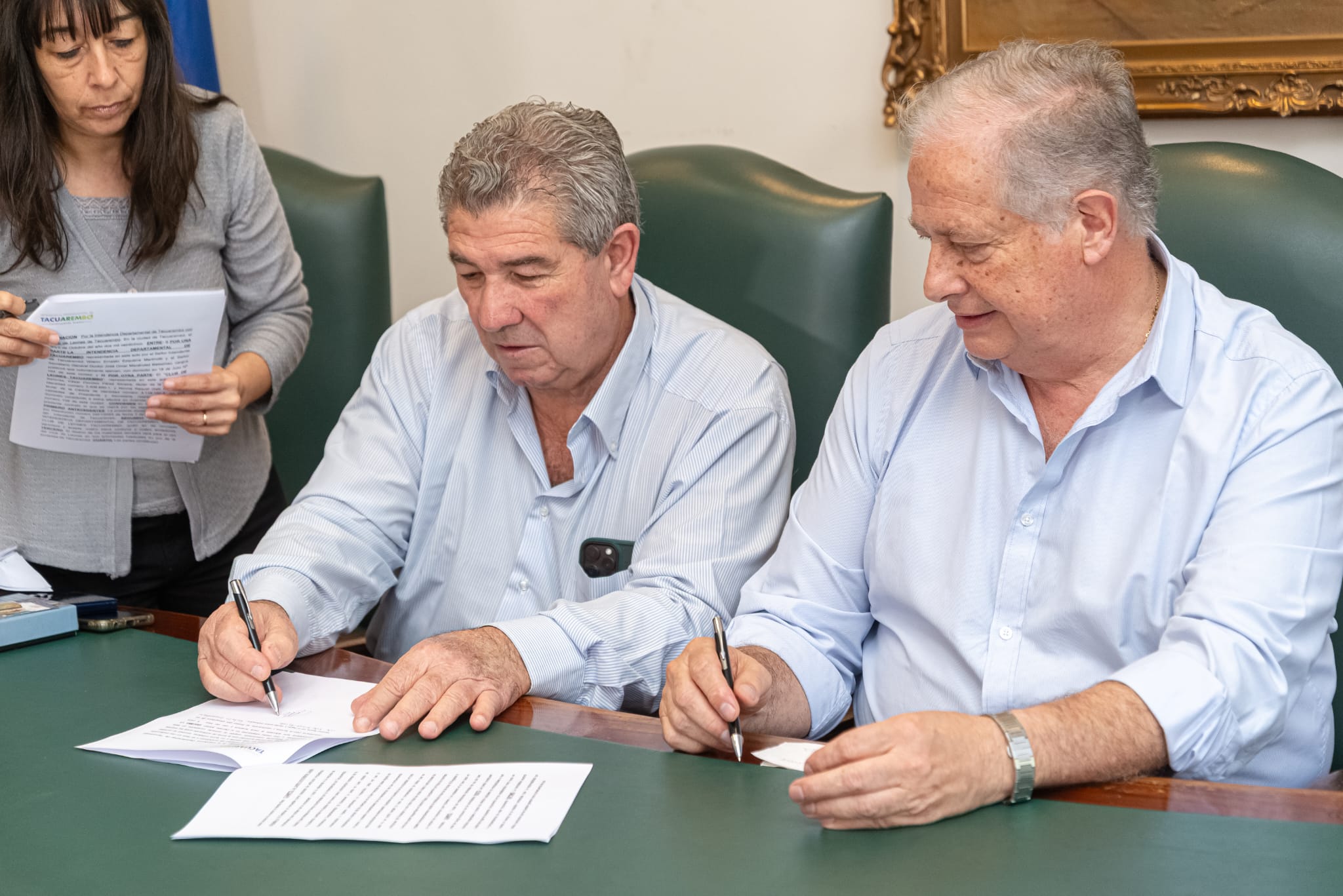 El acto contó con la presencia del Intendente, Wilson Ezquerra, y el Secretario General, José Omar Menéndez, quienes oficializaron el acuerdo con representantes de la institución de servicio.