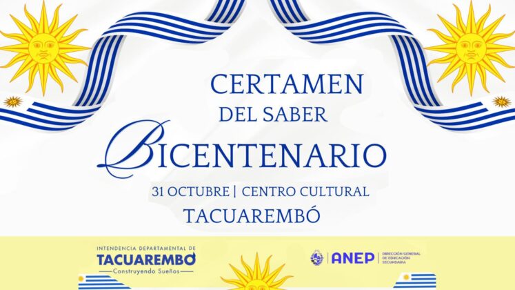 La Intendencia Departamental de Tacuarembó, a través de la Dirección General de Turismo, Deportes y Juventud, en coordinación con la Dirección General de Educación y Cultura y la Dirección de Juventud, presentó este martes los detalles del Certamen del Saber «Bicentenario» que se llevará a cabo el próximo viernes 31 de octubre en el Centro Cultural de Tacuarembó.
