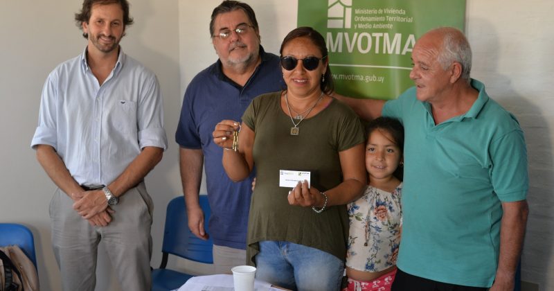 El Intendente Eber da Rosa asistió a la firma de los comodatos y acto de entrega de las primeras 9 llaves de un total de 36 viviendas; que se están construyendo en convenio entre la Intendencia y el MVOTMA para el realojo de vecinos del Barrio San Gabriel.